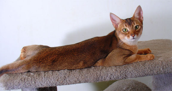 tabby cats as the Abyssinian is a tabby carrying the agouti gene. In the