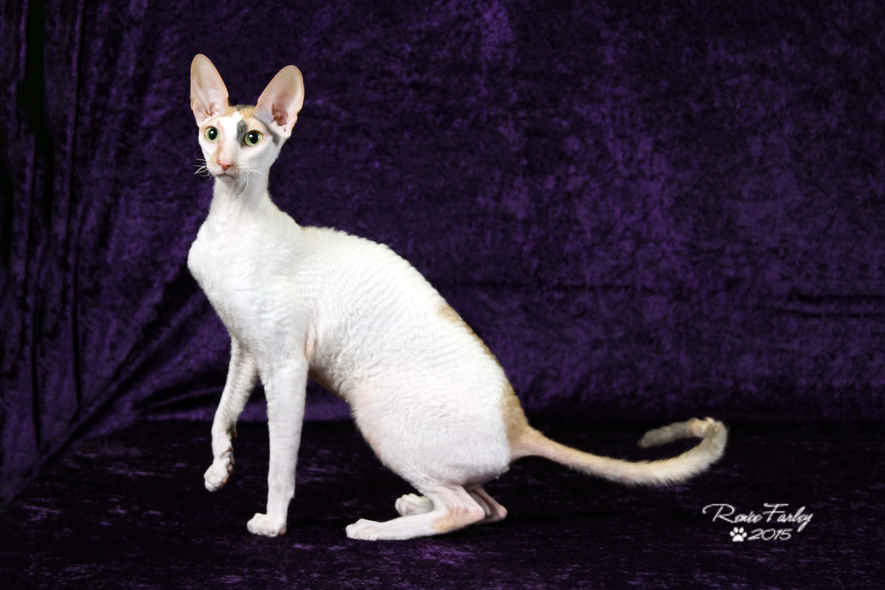 On July 21, 1950, in a barn in Cornwall, England, a kitten was born which would be the foundation of a new breed of cat. The kitten's mother and littermates were normal looking domestic shorthair cats. But this one kitten, later named Kallibunker, had a very short, soft, fine wavy coat. As he grew up it was apparent that his body appearance was also different from the other cats, longer and leaner with large ears. The owner of that barn in England was Mrs. Ennismore and she had once owned a breed of rabbit called the Castor Rex rabbit. She thought that this strange kitten's coat was a lot like her rabbit's coat and contacted a well known geneticist for help. Together they did experimental breedings and discovered that the coat was the rexoid gene operating as a simple recessive. They named their new cat breed Rex.