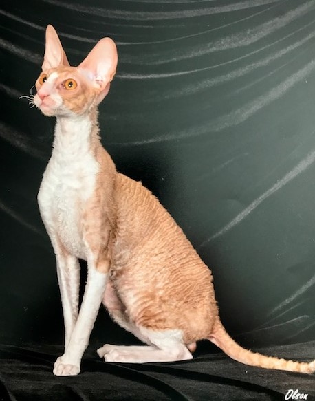 A Rex is a very active, very intelligent, very affectionate cat. They think they are a member of your family and they want to help run things. Rex are not a good cat for people who want their pet to sit on a chair and stay out of the way. Rex race through the house and bounce off the walls. They will open a cabinet door and eat all of your cookies with no shame at all. And then they will jump on your lap and demand that you love them. They enjoy riding on shoulders. And, with their extreme intelligence, they can learn anything you want to teach them. They may not always choose to do it but they can learn it.