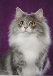 | CATEQUIL BOMBAY SAPPHIRE "Saphy" Norwegian Forest Cat Silver Tabby & White Female O/B: Lynn Landers-Dickinson |