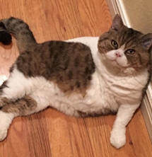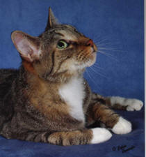 | CATEQUIL FOUR ON THE FLOOR OF JA DA "Turbo" Selkirk Rex Shorthair Brown McTabby & White Neuter B: Lynn Landers-Dickinson O: Maria Sheffer |