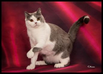 | LYATI MILADY BLUEBELLS RING-A-STAR "Ringo" British Shorthair Blue & White Female B/O: Lyla Fauble |