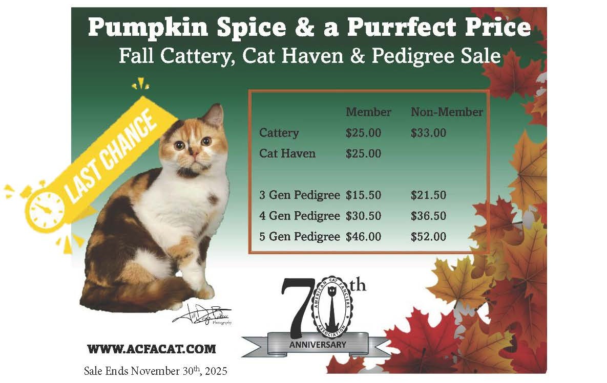 Originating in 1955, ACFA is known as the Fairest, Friendliest and most Fun feline association! Our goal is to promote the welfare, education, knowledge and interest in all domesticated, purebred and non-purebred cats, to breeders, owners, exhibitors of cats and the general public.